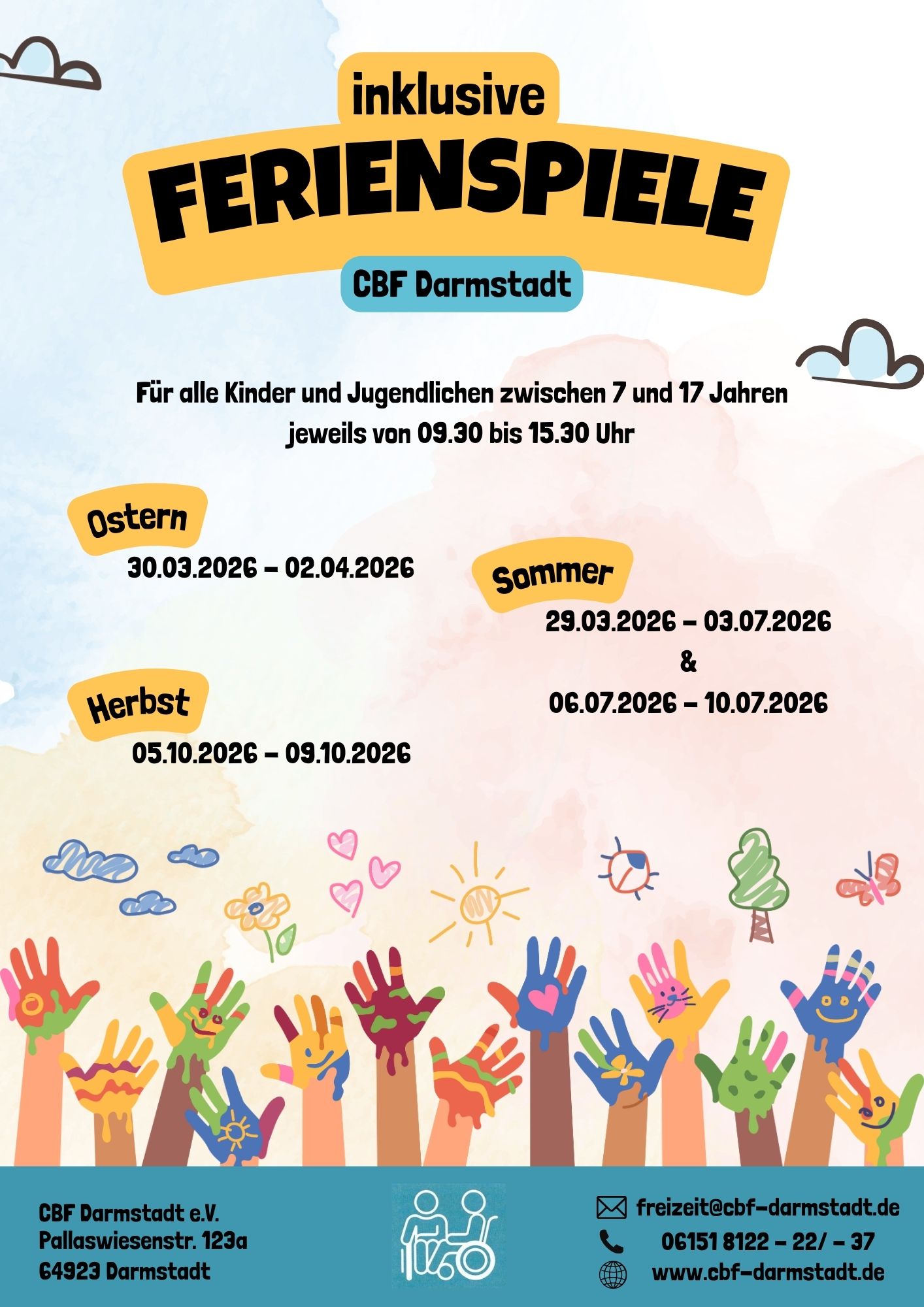 Anmeldungen sind vom 27.04. bis 12.06.2026 über unsere Website www.cbf-da.de/leistungen/freizeitangebote-fuer-kinder-und-jugendliche möglich. Selbstverständlich können Kinder an einer oder beiden Wochen teilnehmen.